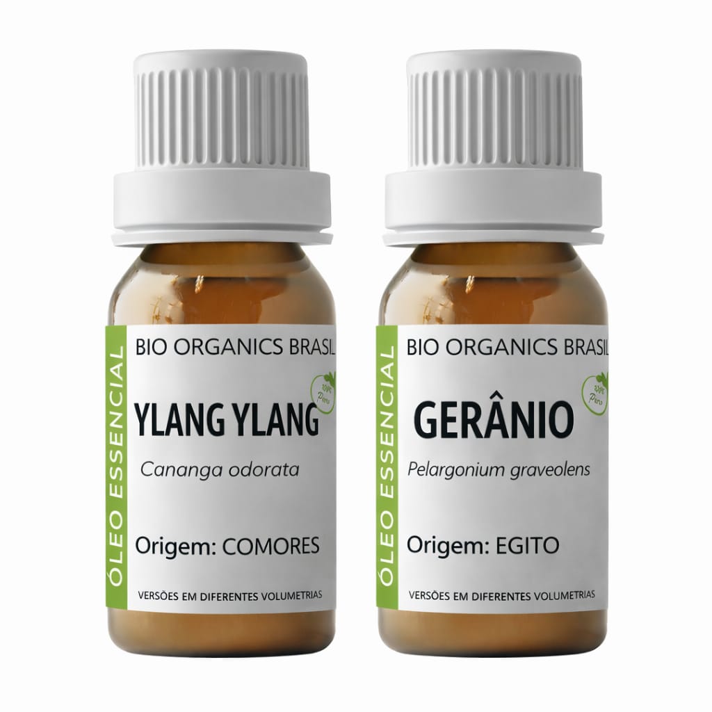 Kit Óleo Essencial Ylang Ylang 10ml + Óleo Essencial Gerânio 10ml